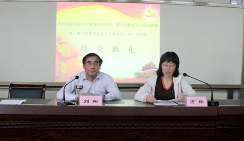 4月28日下午,中共无锡开放大学委员会党校第一期入党积极分子培训班暨“青年马克思主义者培养工程”培训班结业典礼在行政楼五楼演播厅举行。党委书记、党校校长刘彬,各系党支部书记及联系人参加了此次结业典礼。会议由党群工作处处长方烨主持。