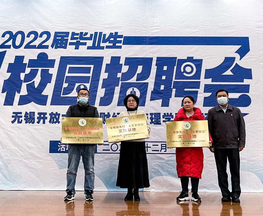 启动仪式上,王仁刚副书记给上海舆葵企业管理信息咨询有限公司、无锡聚业会计事务有限公司、无锡市鼎嘉会计服务有限公司(财经与管理学院校企合作单位)“文明我先行·人生更出彩”实践基地授牌,旨在通过基地为毕业生拓宽专业实习和就业渠道,全面提升学生综合职业素养制。接着,唐东副校长与上海舆葵企业管理信息咨询有限公司张岚女士共同为“无锡开放大学·上海舆葵云财务共享实训中心”揭牌,标志双方校企合作、产学研结合的协同育人模式进入了新的征程。揭牌后,张岚女士作为与会企业代表发言,表达了“智力资本”是企业迅速发展、业务可持续性发展源泉的切身体会,希望与学校在企业未来人才培养方面能有更前延的拓展和深度合作,选择与我校合作是因为我校毕业生在企业以往工作中表现出的“实操、务实”优秀特质。
