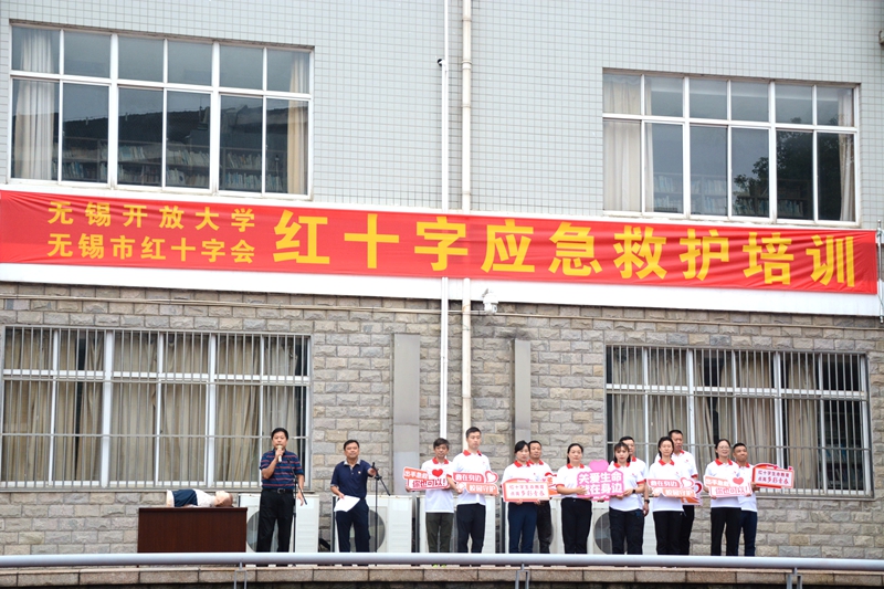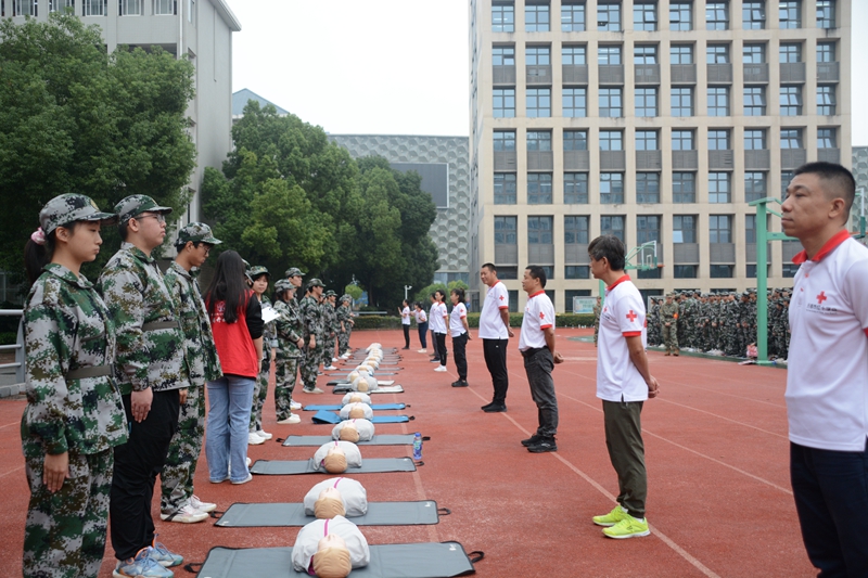 2023年9月24日上午,在绿色的军训场上,由无锡开放大学和无锡市红十字会联合举办的红十字应急救护培训如期举行。参加军训的1400名青年学生、无锡市红十字会应急救护培训师资团队,校党委副书记王仁刚、校院学工干部和全体班主任老师参加培训学习。培训班由学生工作处杨勇处长主持。
