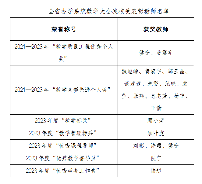 我校在市教育局正确领导下,不断加强学科建设,狠抓教学质量,最终获评2021—2023年“教学质量工程优秀组织奖”“教学竞赛优秀组织奖”。