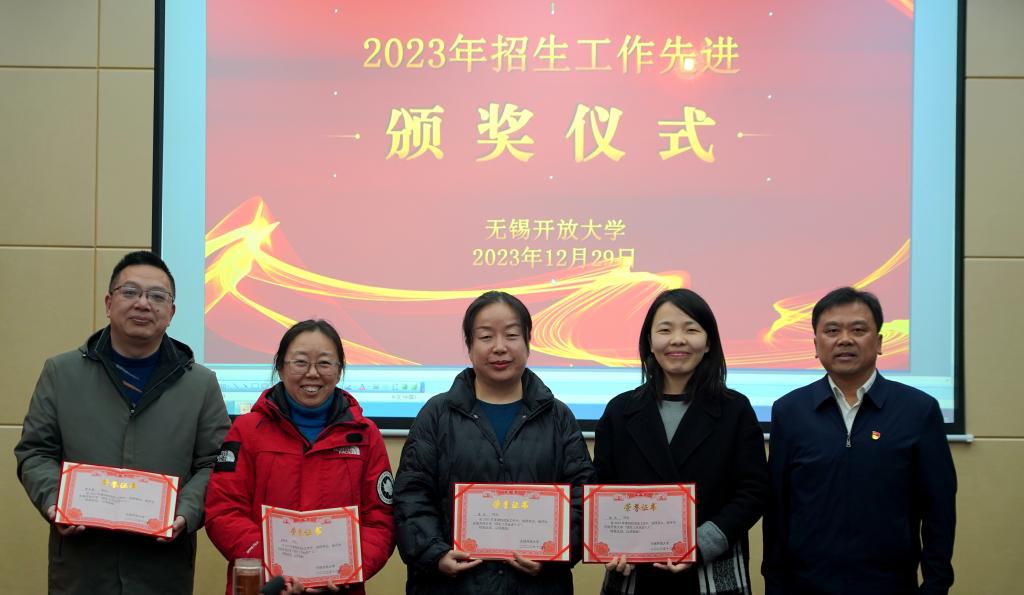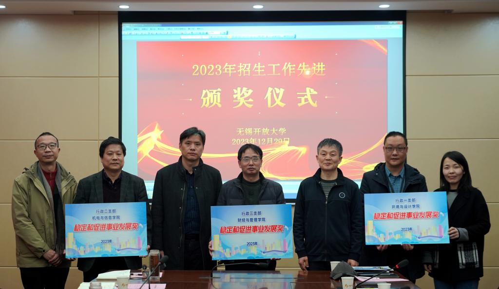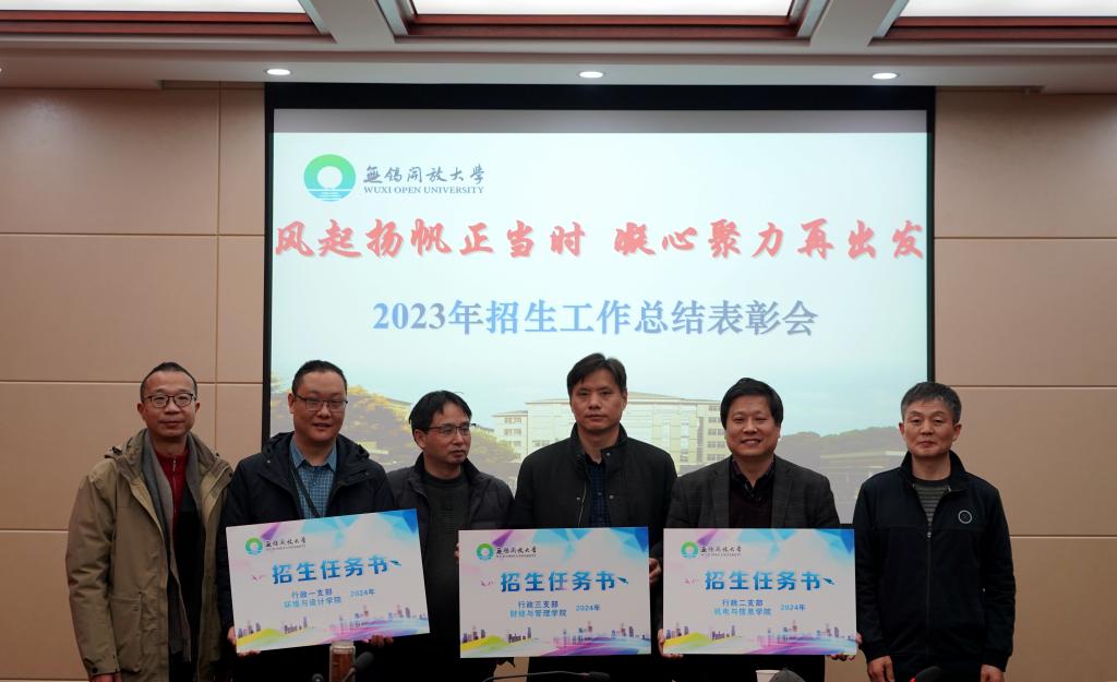 会上,党政办公室副主任顾银伟宣读了《关于表彰2023年稳定和促进事业发展奖的决定》;教务处处长丁晓华宣读了《关于表彰2023年招生工作先进集体和先进个人的决定》,贾厚林校长为获学校稳定和促进事业发展奖的招生工作组颁发了荣誉证书,王仁刚书记为获得招生工作先进集体的代表和招生工作先进个人的教师颁发荣誉证书。随后,根据《无锡开放大学开放教育全员招生工作方案》,学校给三个招生工作组,即环境与设计学院和行政一支部工作组、机电与信息学院和行政二支部工作组、财经与管理学院和行政三支部工作组下达了2024年开放教育全员招生任务书。