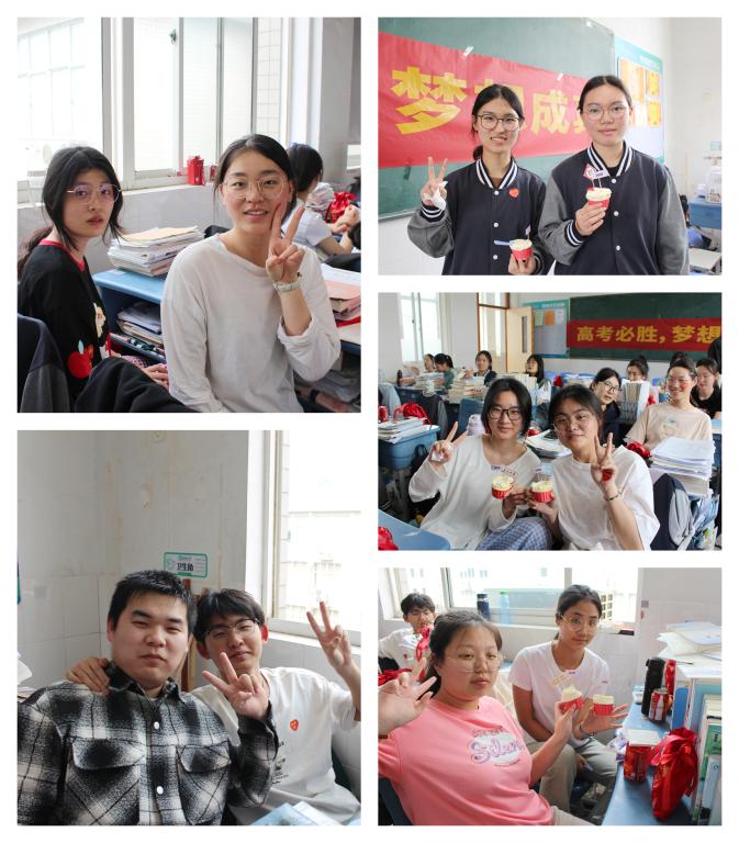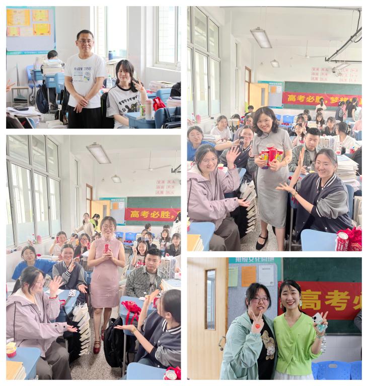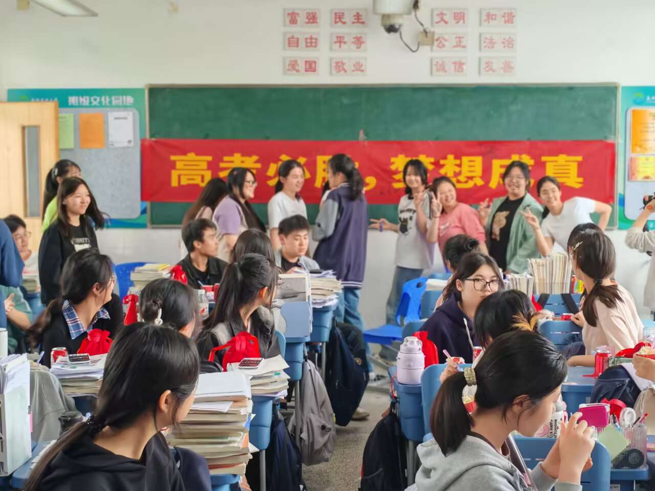 老师们为每位同学准备了“高考加油包”,装满了同学们喜欢吃的零食。师生共同分享定制蛋糕,寓意“甜蜜圆梦”。随后,孙金童老师带领全班高呼“22会计,高考必胜”口号,并在红色横幅上郑重签名。教室内誓言铿锵,横幅上名字熠熠,师生合影定格下此刻的昂扬斗志。