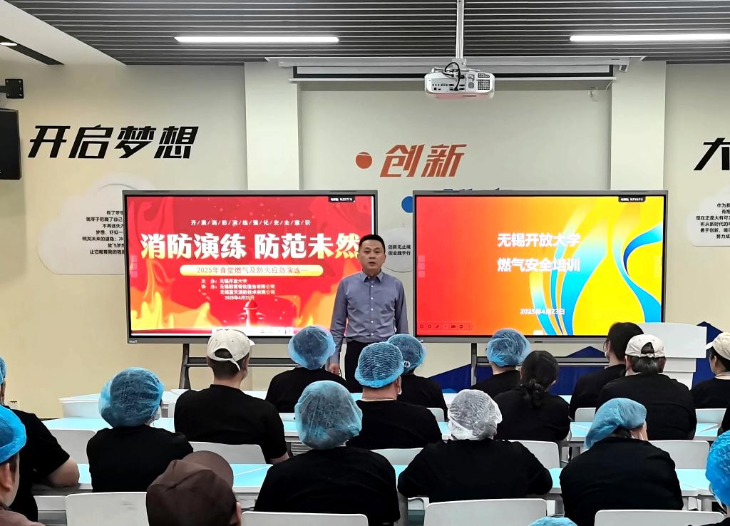 为深入贯彻落实《无锡开放大学校园及周边安全稳定治理提升实施方案》要求,4月23日下午,学校组织开展食堂消防和燃气安全演练活动,结合市教育局五一安全检查的要求,全面强化从业人员安全意识和应急处置能力。副校长宋祖楼,无锡市公安局梁溪分局驻校警官章慧、后勤资产处、安全保卫处负责人和服务外包单位代表和食堂全体员工参加了活动。