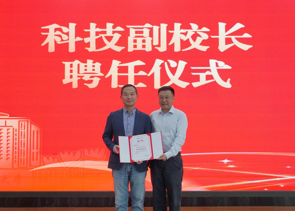 活动伊始,校党委副书记高峻代表学校向方伟教授颁发我校科技副校长聘书,标志着双方在人工智能教育领域的深度合作正式启动。高书记表示方教授的加入将为学校数字化转型注入强劲动能,期待通过校际合作推动人工智能与教育教学的深度融合。