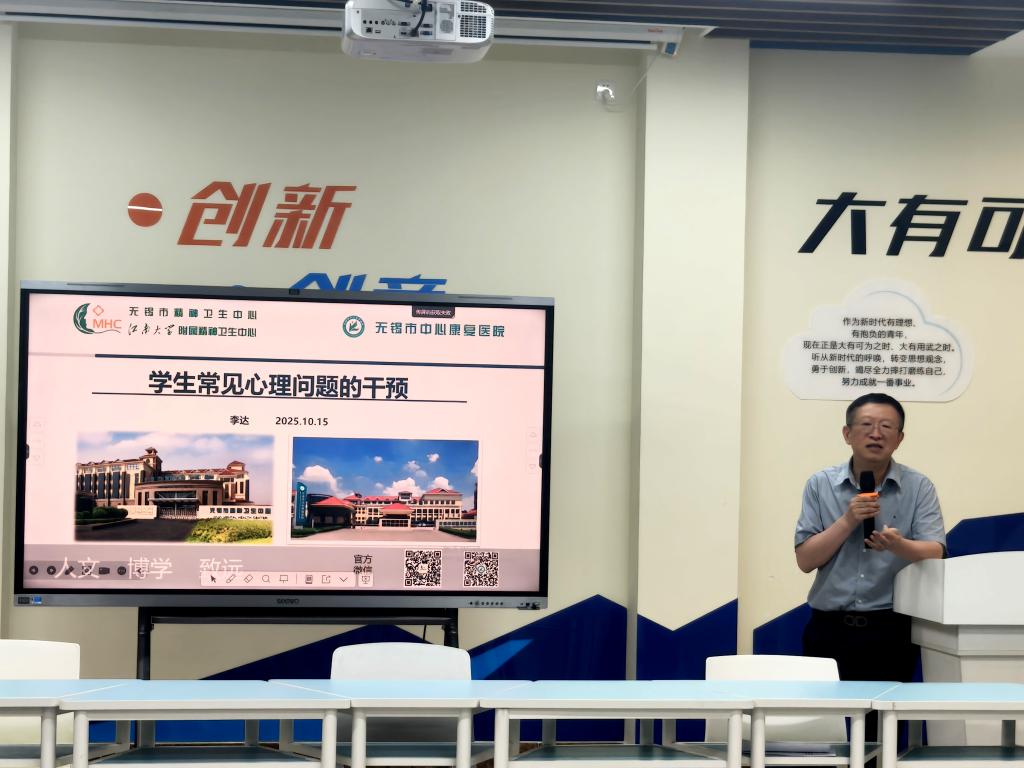 本次论坛特邀无锡市精神卫生中心精神康复科主任李达主任医师担任主讲嘉宾。李主任结合其30余年的临床经验,不仅系统剖析了当代学生常见的心理困扰、障碍乃至精神疾病的层级与表现,更以自己在心理咨询工作中遇到的生动案例,现场展示了如何与需要心理治疗的学生进行有效沟通,并进行现场治疗。