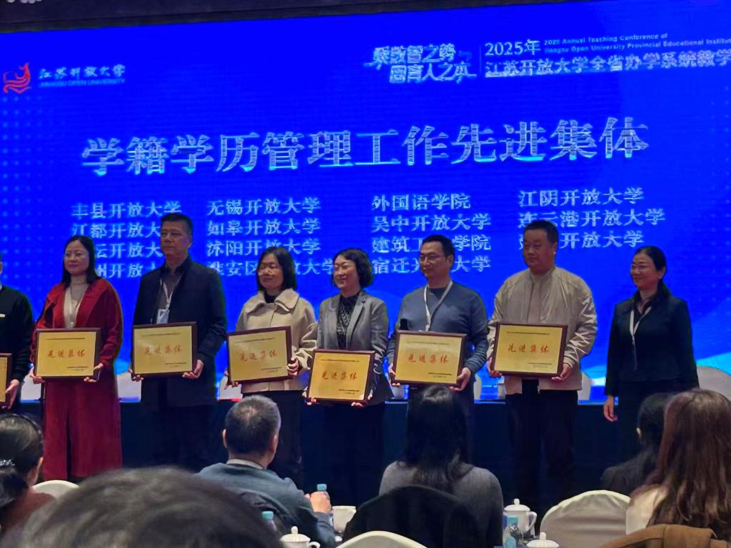 会上,为表彰先进、树立典型,江苏开放大学对2025年教学战线表现突出的先进集体和个人进行了隆重表彰。无锡开放大学凭借在学籍学历管理工作中的严谨规范、高效服务与创新实践,获评“江苏开放大学2025年度学籍学历管理工作先进集体”;我校邓基桢老师以扎实的业务能力、细致的工作态度和优异的工作成效,获评“学籍学历管理工作先进个人”,充分展现了无锡开放大学在教学管理领域的过硬水平。