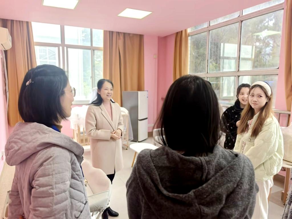 12月10日上午,副校长、校工会主席杨磊云带队来到我校新建成的“爱心母婴室”,与备孕及哺乳期女教师亲切交流,现场体验母婴设施功能。这间占地约30平方米的温馨空间,配备了护理台、消毒机、冰箱、婴儿床和储物柜等设施,标志着我校对育龄教职工关怀体系的全面升级。随着我校近年青年教师队伍扩大,近两年适婚育龄女教师明显增多,以往哺乳期教师频繁奔波于教室与家庭之间,身心压力显著。母婴室的启用,精准解决了“背奶妈妈”的燃眉之急——“再也不用躲在卫生间挤奶了”、“以后可以带孩子来学校,喂奶换尿布都很方便”,年轻妈妈和准妈妈们在现场感慨。杨磊云副校长亲自测试沙发床舒适度,检查设备操作流程,她强调:“建设母婴室看似小事,却体现了学校对女性教职工权益的尊重”,她嘱咐工会干部要了解有关教师在使用中的意见,进一步完善母婴室的设施和服务工作。