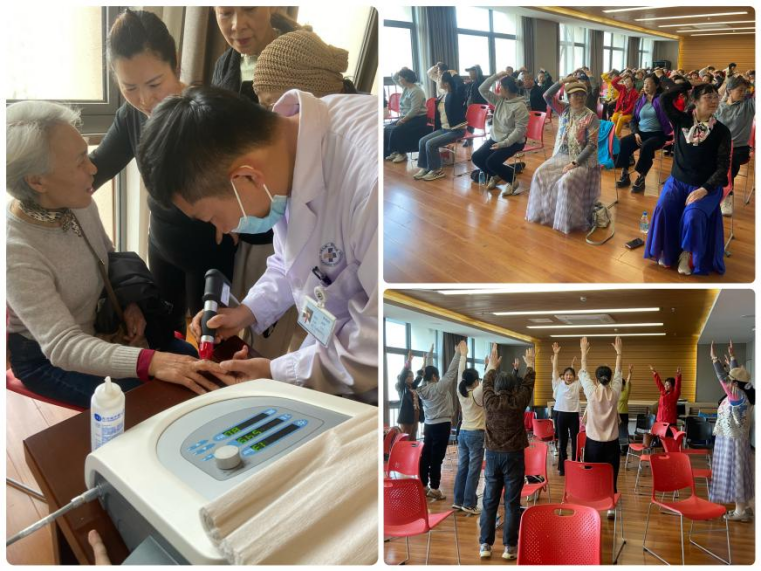活动现场设置了运动促进健康筛查、运动医学专家科普讲座、肩颈舒缓理疗操体验及运动教学体验等环节。来自无锡九院运动医学科的王骏主任医师、徐艳文副主任康复治疗师、刘振峰副主任中医师等专家团队,为学员们带来了通俗易懂的健康知识与科学运动指导。在专业运动指导员的带领下,老年学员们认真学习了适合老年人的舒缓操、抗阻训练等课程,并积极参与互动,现场气氛热烈。学员们纷纷表示,通过活动学到了实用的运动方法,增强了自我健康管理的信心。