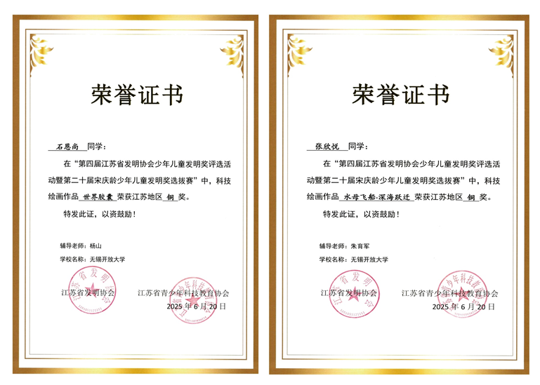 近年来,学校创新氛围日益浓厚,不仅高度重视学生科技创新素养的培养,更是在平时教学的点点滴滴、校园的一草一木中提升学生审美素养,以美育人、以美化人,以美育浸润行动激发学生创新活力。在第四届江苏省发明协会少年儿童发明奖评选活动暨第二十届宋庆龄少年儿童发明奖评比活动中,我校环境与设计学院艺术教研室吴宇辰、袁莹、朱育军、杨山、张燕、吴方等老师精心指导学生参赛,学生作品荣获科技绘画金奖2项、银奖5项、铜奖2项、优秀奖5项,在去年1金1银6铜4项优秀奖的基础上取得了新的突破。