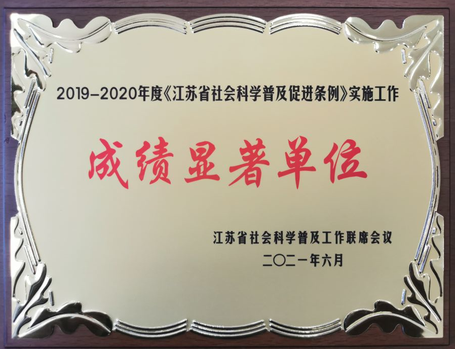 近日,从江苏省哲学社会科学界联合会传来喜报,我校被江苏省社会科学普及工作联席会议评为“2019-2020年度《江苏省社会科学普及促进条例》实施工作成绩显著单位”。此次无锡全市共有无锡开放大学、无锡市社科联、无锡市新四军历史研究会等6家市属单位获此殊荣,我校是其中唯一的学校获奖单位。