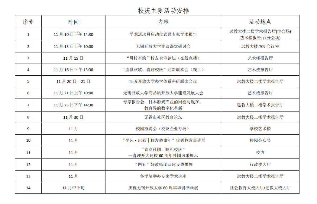 我们诚挚地邀请并热忱地欢迎各级领导、各位校友和各界友人相聚无锡开大校园、相约云端,畅叙友情,同襄盛典,再谱华章,共创未来!