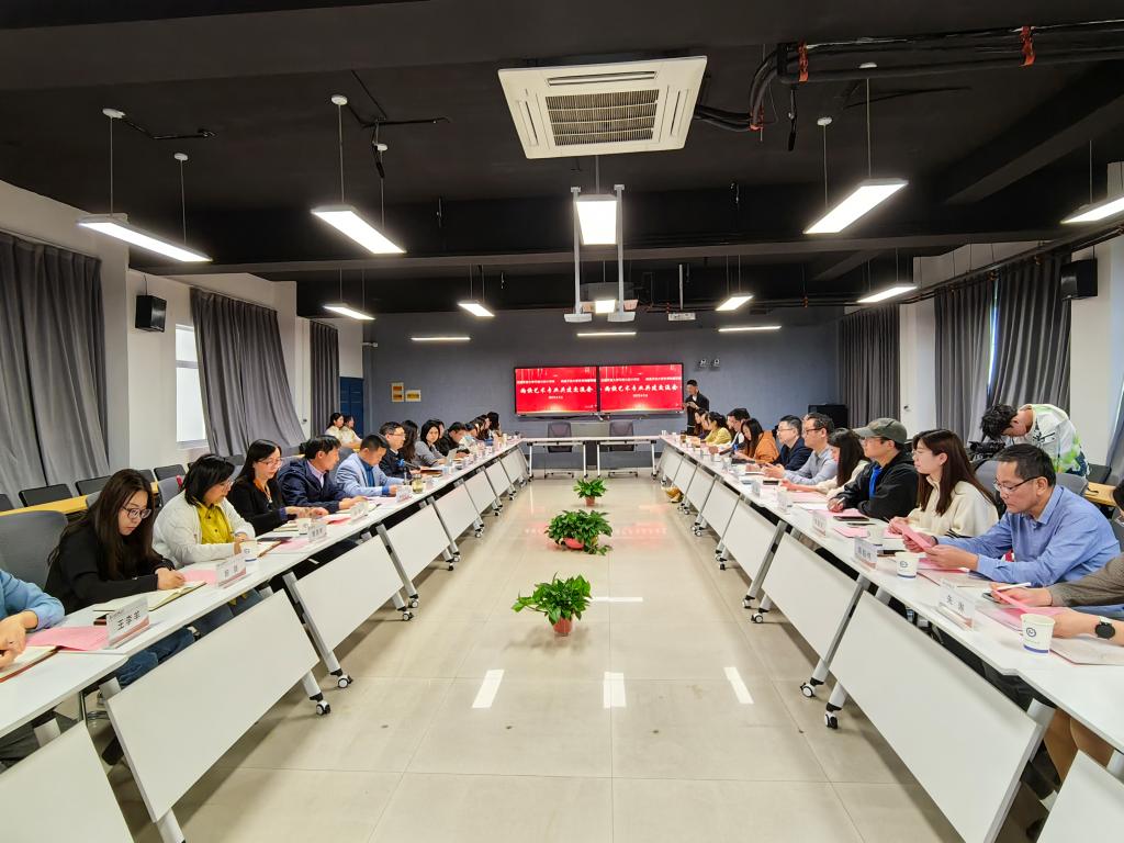 为了推动学院教育改革和专业发展,提高教师教育教学水平,增加办学系统学校间的切磋交流与学习,促进两校教育教学、教研教改工作的均衡发展和共同提高,5月12日下午,无锡开放大学环境与设计学院魏旭峥院长、武靖副院长、艺术教研室张黎主任、专业负责人袁莹老师等一行19人,前往南通开放大学艺术传媒学院进行学习调研,工商两院艺术专业共建事宜。南通开放大学副校长薛亮、艺术传媒学院总支书记、院长乔鸿君、副院长胡涓华、副院长徐勤岸及学院全体教师参加交流,乔鸿君书记、院长主持会议。