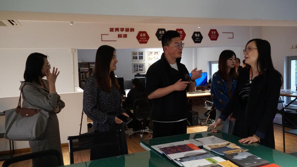 随后,无锡开放大学环境与设计学院一行参观了艺术传媒学院一体化实训中心与工作室,艺术传媒学院坚持需求导向,对接产业链,“集专业、集课程、集实训、聚资源、聚特色”工作室模式教学和“一制四化”的校企融合实训,实现复合型、一专多能的应用型人才的培养,是现代职业教育新模式和新范本。