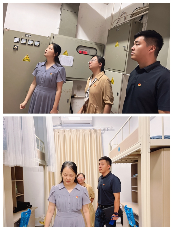 会议结束后,奚书记、贾校长亲自带队,副书记高峻、副校长杨磊云、副校长丁晓华及相关部门负责人分成三组,对学校教室、宿舍、食堂、实验实训室、教学楼、消控中心、配电间、地下车库等重点场所开展全面的校园安全检查,对发现的安全隐患提出了整改要求,并明确了责任人和整改时限。
