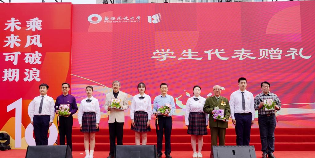 学校特别邀请了“五老”代表——学校原党委书记、老教师代表奚小网,无锡江南超算中心科学家、老专家代表桂亚东,风光里青少年校外教育基地主任、抗美援越老兵、老战士代表姚炳华,电大党政管理干部专修科1986届校友、全国劳模、老模范代表李建夏和原广益街道办公室原主任、老干部代表鲍海明为同学们送上寄语。“五老”们用亲身经历和宝贵经验,激励同学们传承红色基因,铭记历史使命,以勤勉学习筑牢知识根基,用拼搏奋进书写青春华章。学生代表向“五老”赠送了亲手制作的竹刻等手工作品,表达了对他们的敬意和感恩。