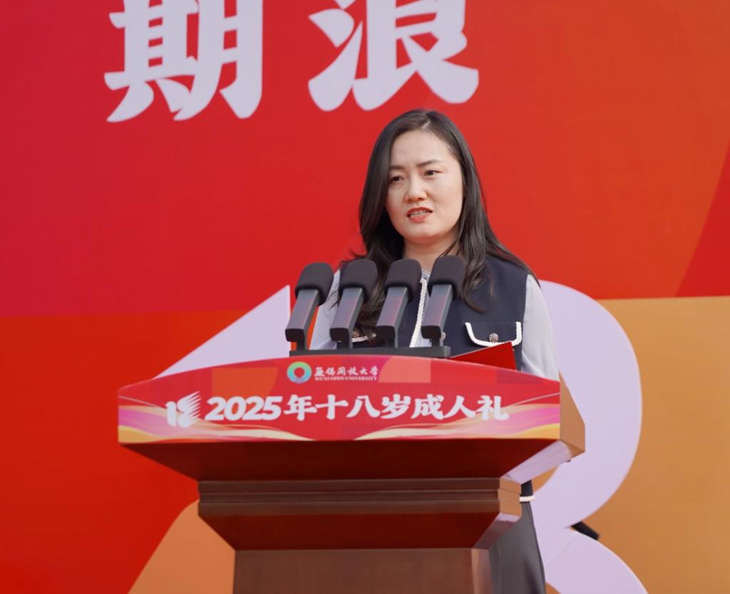 在庄严的《国歌》歌声中,成人仪式正式拉开帷幕。校党委书记贾厚林向同学们送上成长寄语,他期望同学们充分发挥开放大学特色,把握18岁新起点:成人铸魂,独立自强;拥抱18岁新梦想:成长修能,匠心传承;力求18岁新突破:成才精技,创新担当;开启18岁新征程:成就赋能,技能报国,用青春和热血,书写属于自己的辉煌篇章。