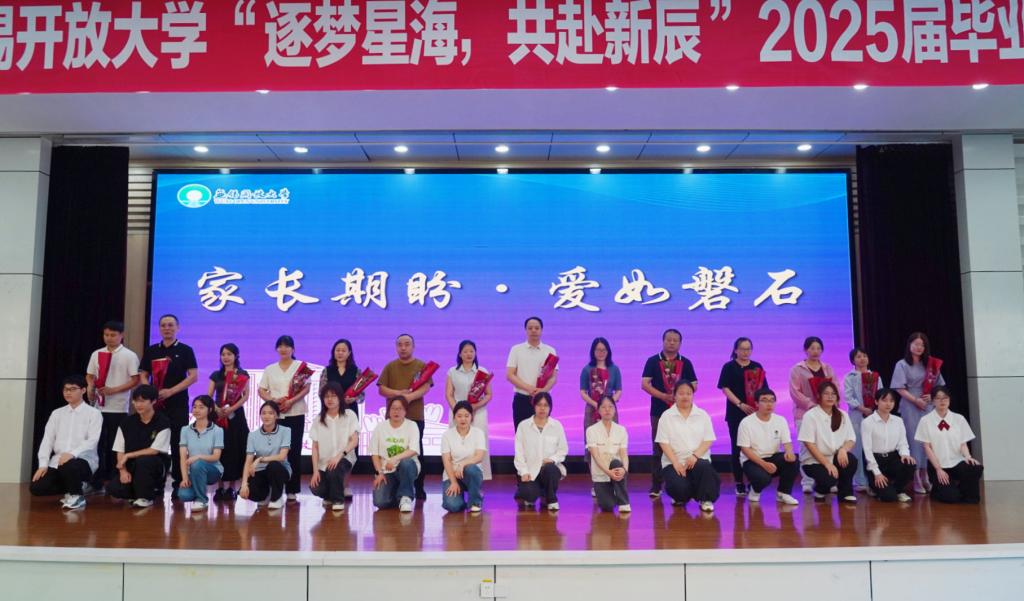 作为校园的守护者,他们始终坚守在岗位上,为学生们的学习生活做好服务保障。宿管阿姨代表陈冬霞、保安大叔代表王国庆、保洁阿姨代表李炳香、食堂阿姨代表张正艳代表全体后勤人员为2025届毕业生们送上美好祝福,希望大家在累的时候始终记得开放大学这个大家庭是他们永远温暖的港湾。