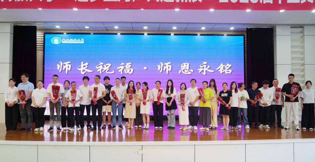 三尺讲台育桃李,一支粉笔写春秋。全体校领导以及各学院负责人、专业课教师和班主任等代表纷纷为毕业学子们送上美好祝愿。“回望来时路,别忘师生情”,2025届全体班主任作为学生的“人生算法导师”,登台逐个为毕业生们送上临别赠言。20广告班班主任杨晓俊寄语学子:“遭遇选择的时候记得自己想要什么”“遭遇失败的时候想想自己获得了什么”“遭遇忐忑的时候永远要心怀期待”。