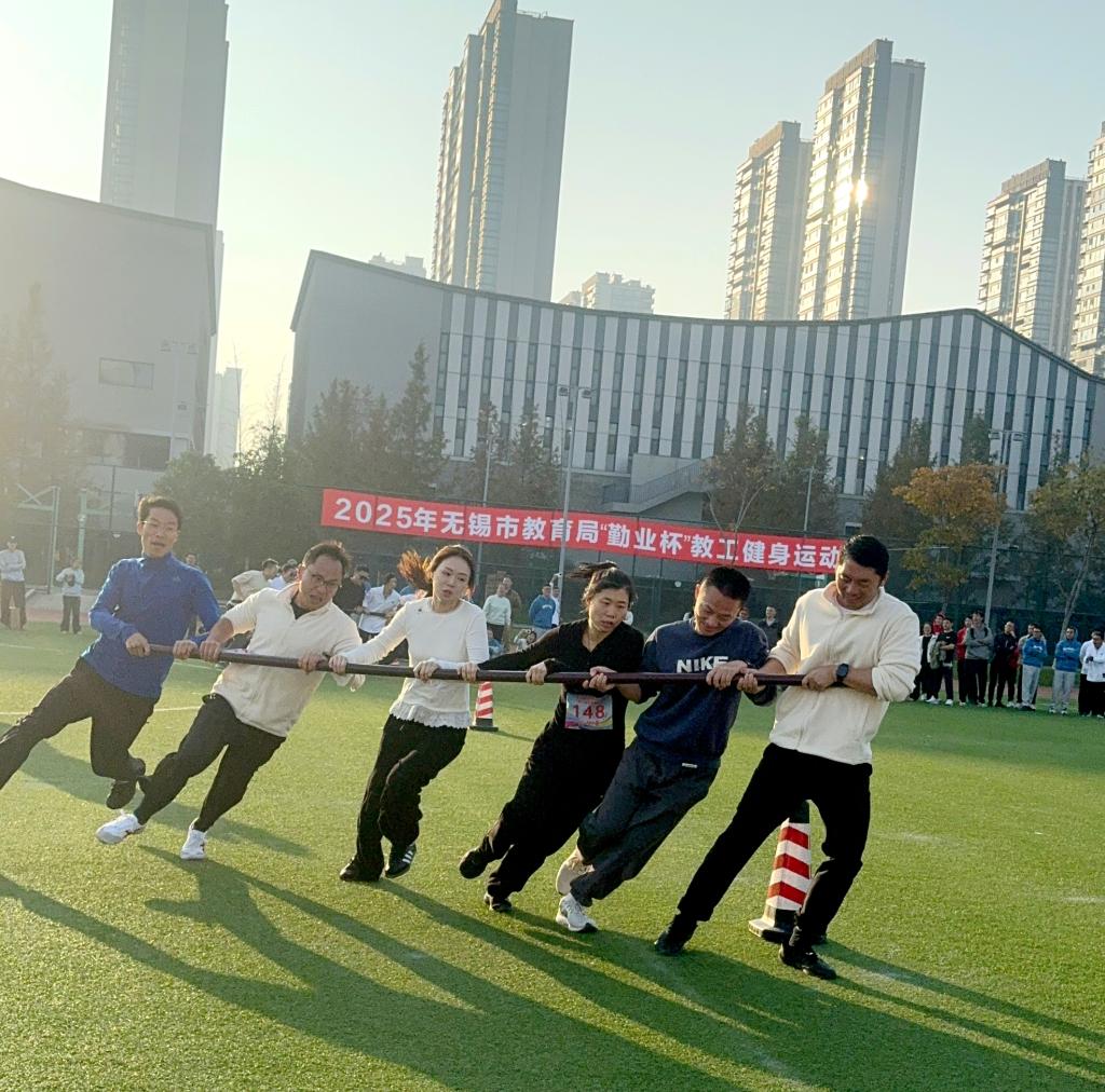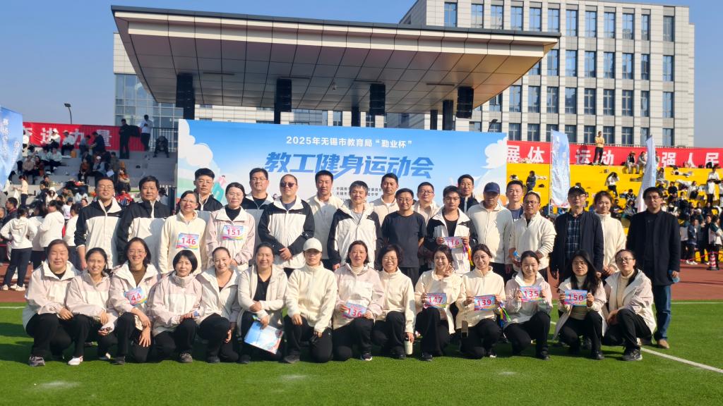 初冬暖阳,和风徐徐,刚刚闭幕的2025年无锡市教育局“勤业杯”教工健身运动会传来喜讯,我校教工代表队荣获团体总分二等奖。2025年无锡市教育局“勤业杯”教工健身运动会由无锡市教育工会主办,共有来自各直属院校、事业单位,市属各民办院校,局机关工会的28支代表队近千名运动员参加了本次运动会。
