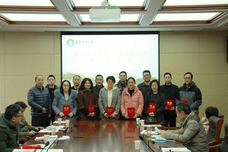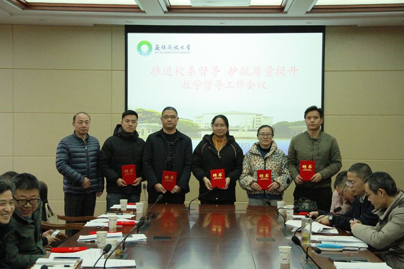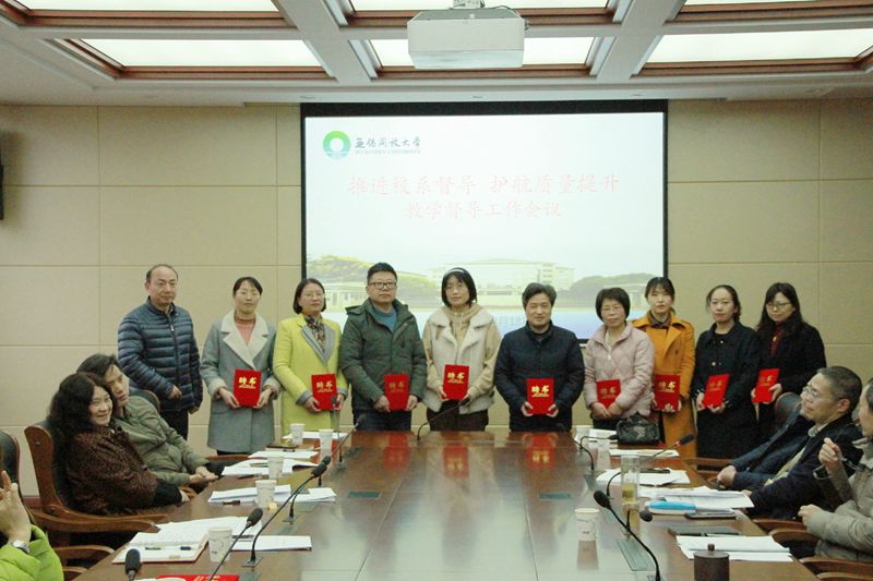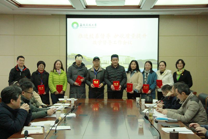 会议伊始,乔维德主任宣读了新聘任校系教学督导员名单,奚小网书记、张旭校长、唐东副校长分别为校、系两级教学督导员颁发聘书。